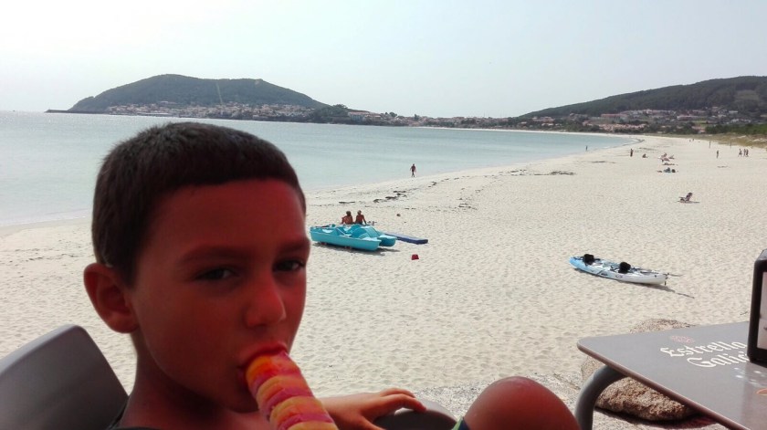 La Playa de Estorde ci incanta, Davide zia Paola ed io vi arriviamo che Marco ed Eleonora sono già in acqua. Li osserviamo dalla terrazza del ristorante dove ci fermiamo a mangiare un bocadillo. A malincuore non li imitiamo, ma ho voglia di raggiungere Claudio ed immergermi a Finisterre.
