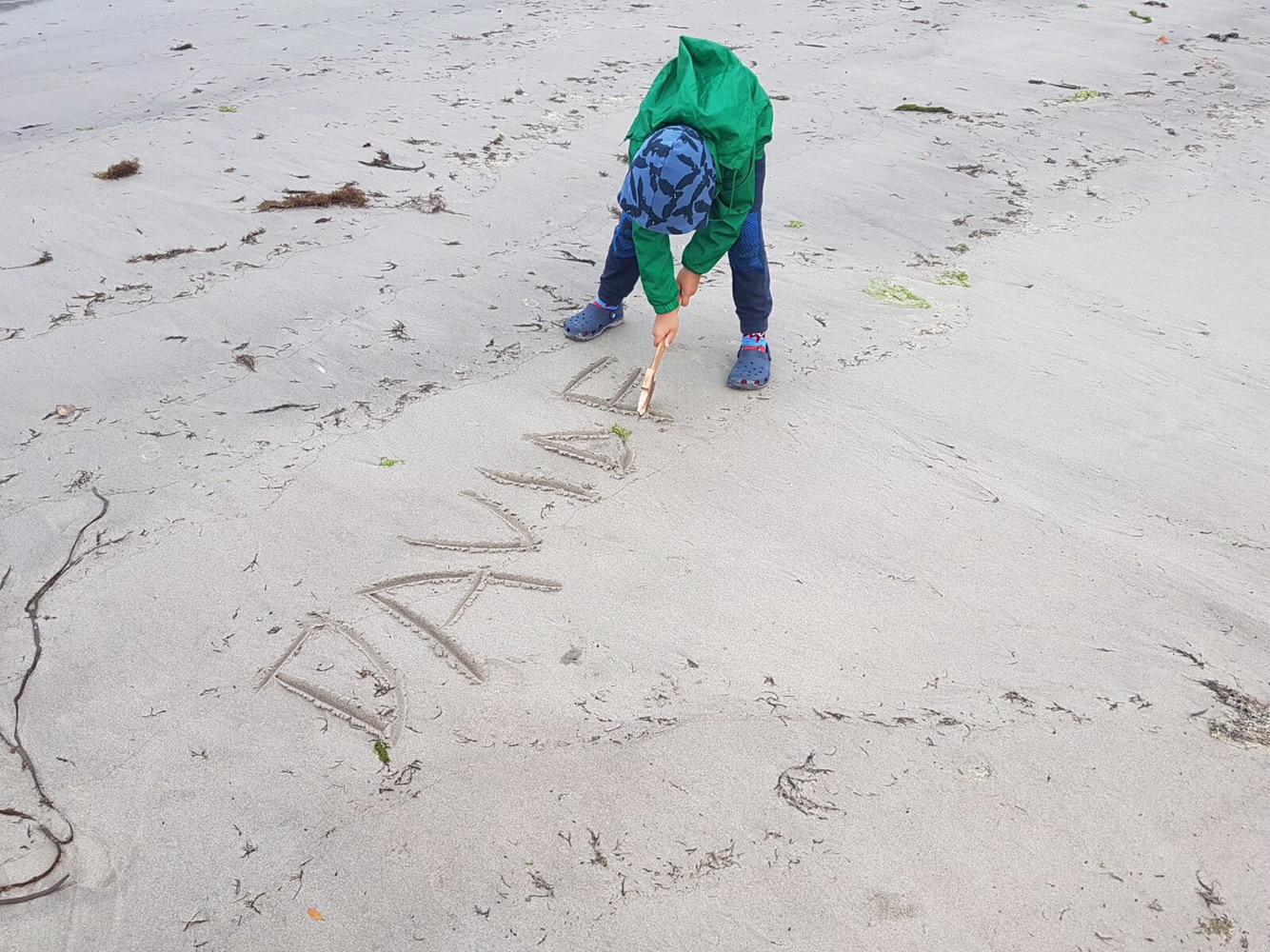 Incredulo di fronte a tanta abbondanza, Davide raccoglie manciate di conchiglie. Ne faremo musicali decorazioni in balcone, a casa.